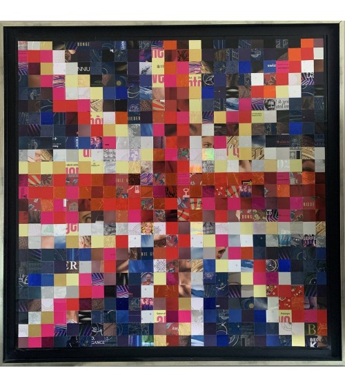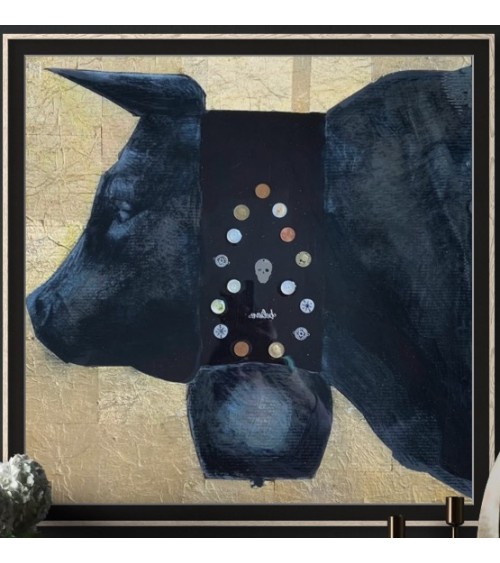Ajouter au panier Vache d'Hérens doite Prix 1 300,00 CHF Acrylique, pastels gras, pièces de monnaie. boutons de culotte, papier emballage de Ferrero Rocher, finissions résine Epoxy, 50x50 + taille du...