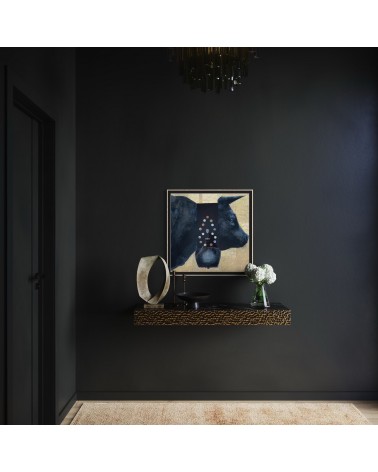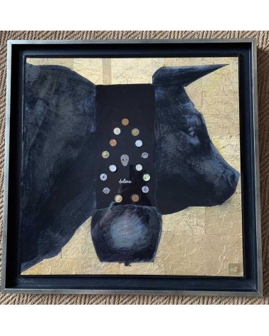 Acrylique, pastels gras, pièces de monnaie. boutons de culotte, papier emballage de Ferrero Rocher, finissions résine Epoxy, 50x50 + taille du cadre