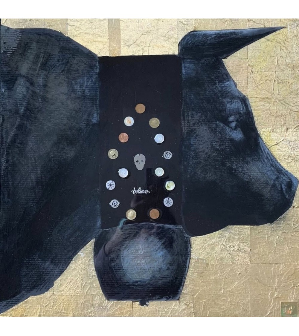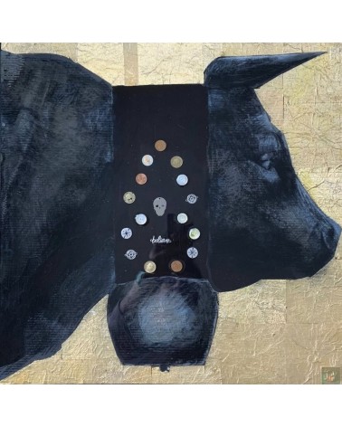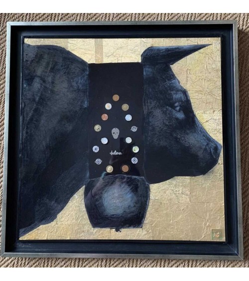 Acrylique, pastels gras, pièces de monnaie. boutons de culotte, papier emballage de Ferrero Rocher, finissions résine Epoxy, 50x50 + taille du cadre